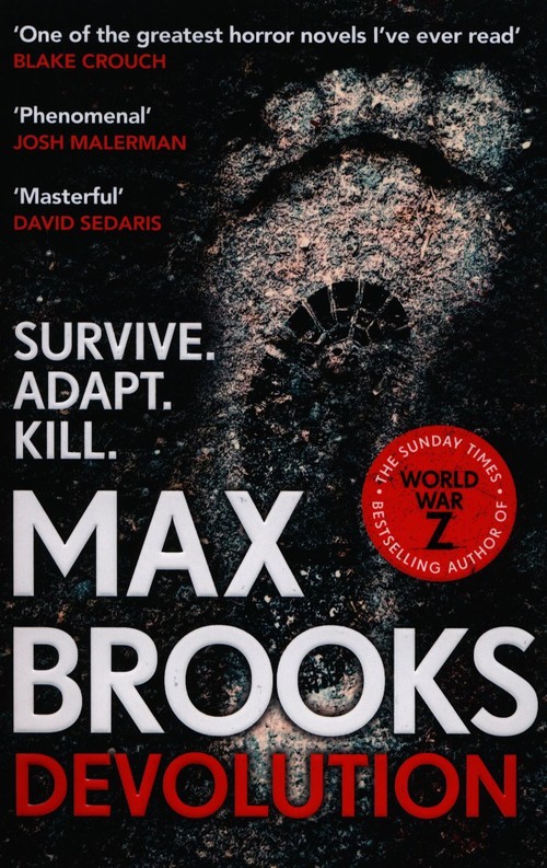 As the ash and chaos from Mount Rainier’s eruption swirled and finally settled, the story of the Greenloop massacre has passed unnoticed, unexamined . . . until now. But the journals of resident Kate Holland, recovered from the town’s bloody wreckage, capture a tale too harrowing – and too earth-shattering in its implications – to be forgotten. In these pages, Max Brooks brings Kate’s extraordinary account to light for the first time, faithfully reproducing her words alongside his own extensive investigations into the massacre and the beasts behind it, once thought legendary but now known to be terrifyingly real. Kate’s is a tale of unexpected strength and resilience, of humanity’s defiance in the face of a terrible predator’s gaze, and inevitably, of savagery and death. Yet it is also far more than that. Because if what Kate Holland saw in those days is real, then we must accept the impossible. We must accept that the creature known as Bigfoot walks among us – and that it is a beast of terrible strength and ferocity. Part survival narrative, part bloody horror tale, part scientific journey into the boundaries between truth and fiction, this is a Bigfoot story as only Max Brooks could chronicle it – and like none you’ve ever read before. ______________________________________ ‘A masterful blend of laugh-out-loud social satire and stuff-your-fist-in-your-mouth horror. One elevates the other, making the book, and its message, all the more relevant.’ David Sedaris 'Drawing you in with likeable characters in a real-world situation, then smashing your trust to pieces like a giant ape crushing a skull with his bare hands. Devolution will make you think twice about booking that remote weekend getaway in the woods.’ Sci-Fi Now, 5* review 'Devolution is one of the greatest horror novels I’ve ever read. The characters soar, the ideas sing, and it’s all going to scare the living daylights out of you.' Blake Crouch, author of Dark Matter and Recursion 'Devolution is spell binding. It is a horror story about how anyone, especially those who think they are above it, can slowly devolve into primal, instinctual behaviour. I was gripped from the first page to the last!' Les Stroud, creator of Survivorman 'Another triumph from Max Brooks! First Zombies. Now Bigfoot. I can't wait until he turns every monster from childhood into an intelligent, entertaining page turner.' Stephen Chbosky, #1 New York Times bestselling author of Imaginary Friend and The Perks of Being a Wallflower 'Brooks packs his plot with action, information, and atmosphere, and captures both the foibles and the heroism of his characters. This slow-burning page-turner will appeal to Brooks’ devoted fans and speculative fiction readers who enjoy tales of monsters.’ Publishers Weekly 'Devolution is by Max Brooks, who wrote the stone cold classic that is World War Z, so I will follow him pretty much anywhere. Few things are pleasanter to read when cosy in bed than utterly dreadful dystopian things happening to somebody else.' Jenny Colgan