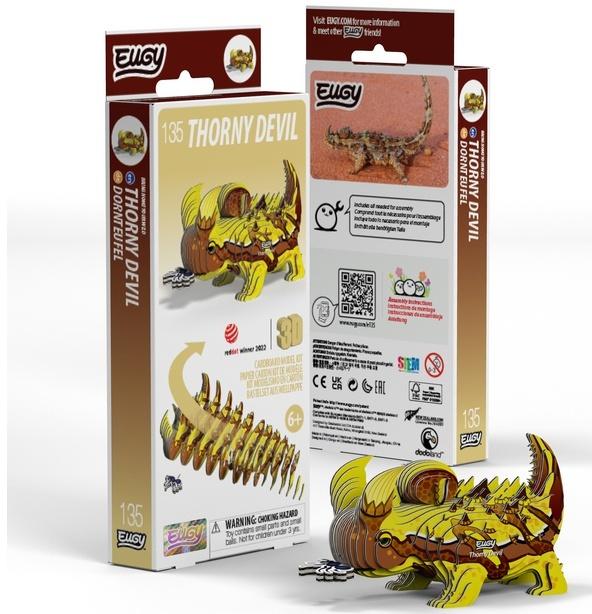Eugy zaprojektowane w Nowej Zelandii są wykonane z przyjaznego dla środowiska kartonu pochodzącego z recyklingu i farby na bazie ryżu. Zestaw zawiera 44 ponumerowane elementy układanki, nietoksyczny klej, oczka oraz link do instrukcji do zbudowania niesamowitej jaszczurki, diabła kolczastego. Zbierz całą serię zwierząt, ptaków, dinozaurów i wiele innych. Dla dzieci w wieku 6 lat +.