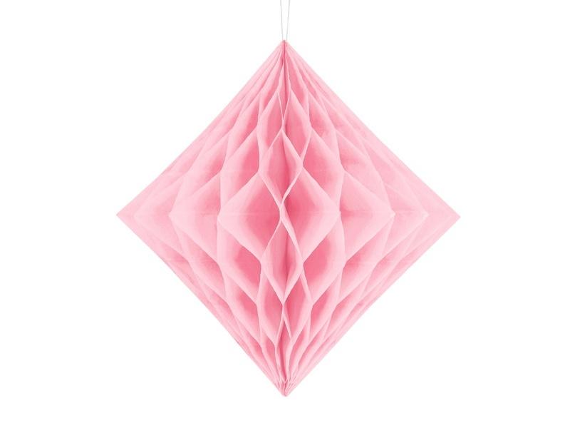 Diament bibułowy w kolorze jasnoróżowym, wysokość ok. 30 cm.