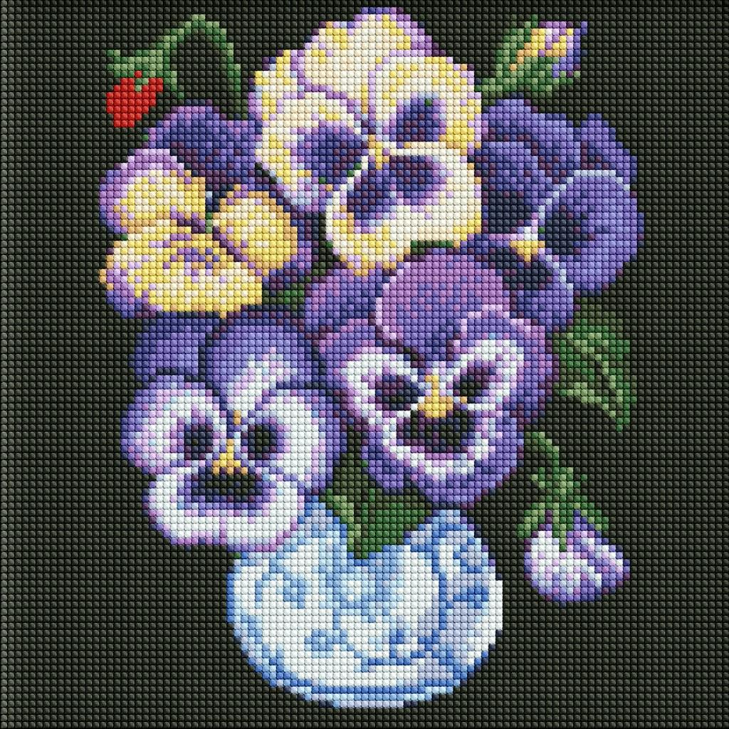 Diamentowa mozaika bez ramy - Bratki 30x30cm