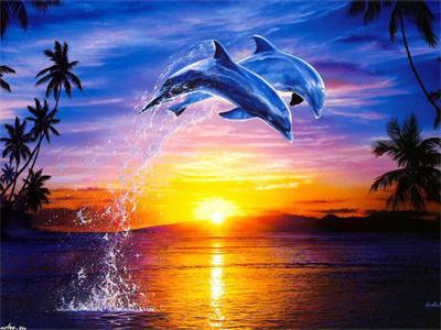 Diamentowa mozaika Delfiny w blasku zachodzącego słońca 60244