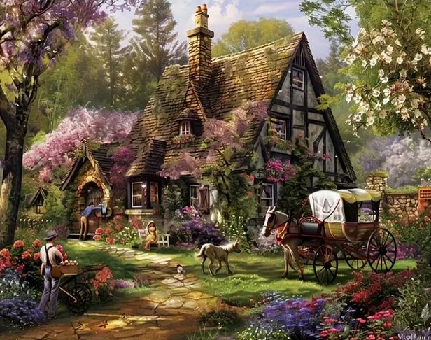 Diamentowa Mozaika Dom i bryczka z końmi NO-2001360