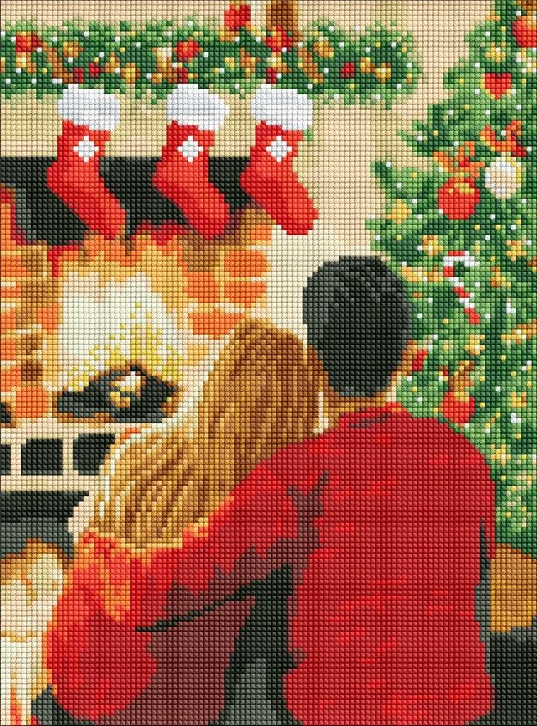 Diamentowa mozaika - Dwoje przy kominku 30x40cm