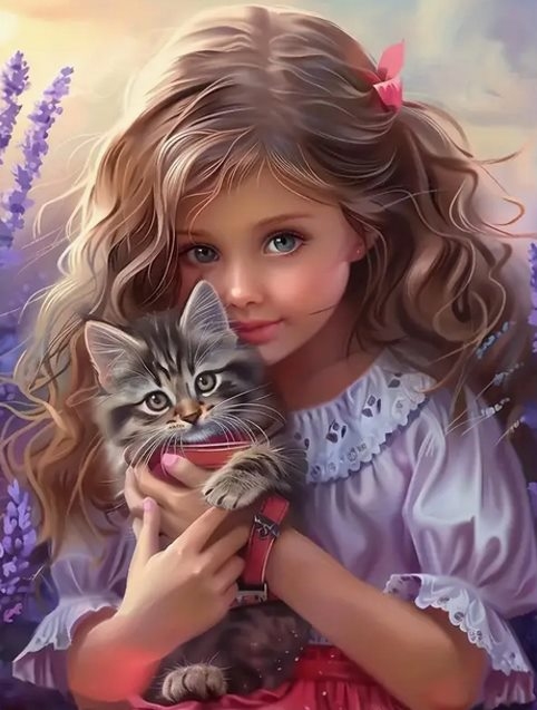 Diamentowa Mozaika Dziewczyna z kotem NO-2001849