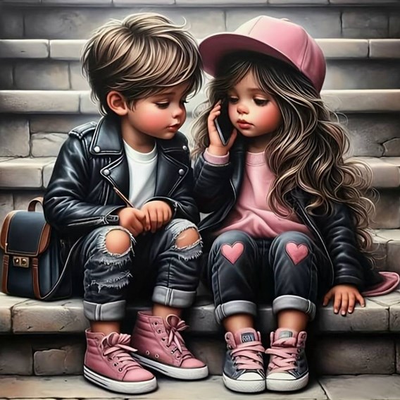 Diamentowa Mozaika Dziewczynka i chłopiec na schodach NO-2001528