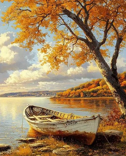Diamentowa Mozaika Jesień łódka na wybrzeżu NO-2003024