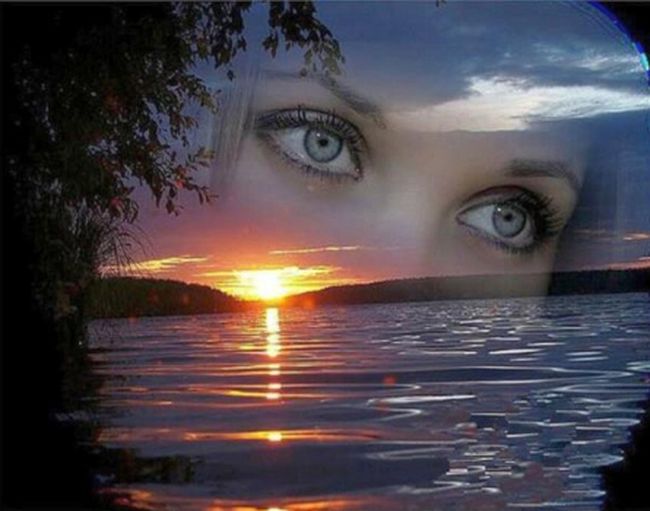 Diamentowa mozaika jezioro+ oczy kobiety NO-1006980