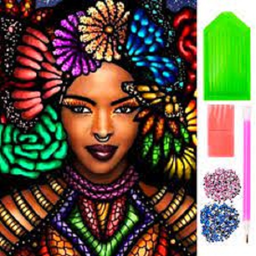 Opakowanie Diamentowa mozaika kobieta czarnoskóra w kwiatach NO-1007444