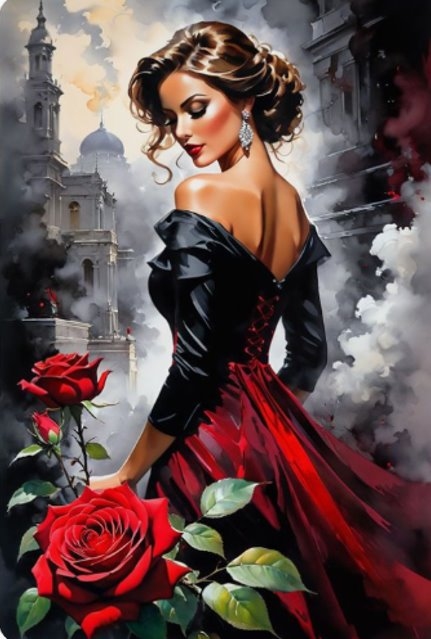 Diamentowa Mozaika Kobieta i czerwona róża NO-2001718