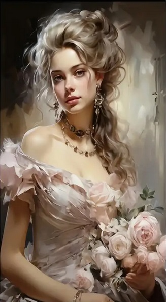 Diamentowa Mozaika Kobieta Młoda dama z bukietem NO-2000316