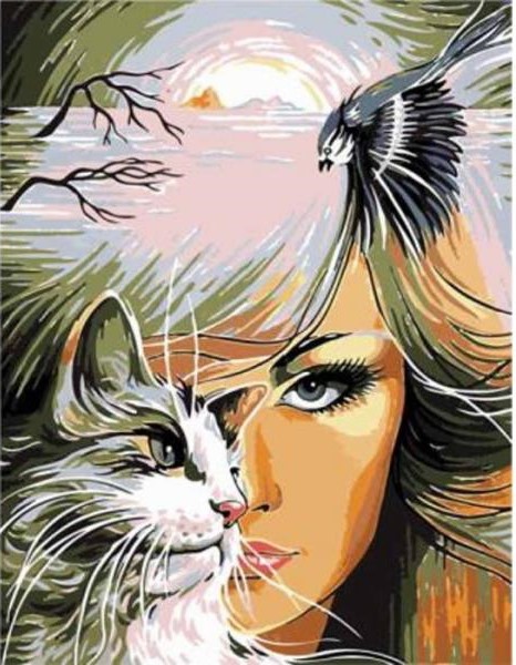 Diamentowa mozaika kobieta z kotem NO-1006773