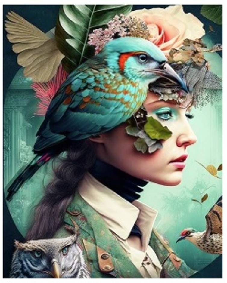 Diamentowa Mozaika Kobieta z ptakami na głowie NO-1009646