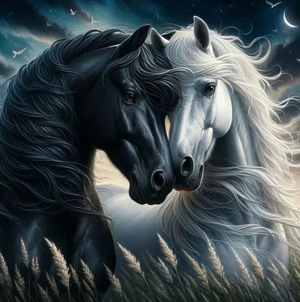 Diamentowa Mozaika Konie biały i czarny w zbożu NO-2002223