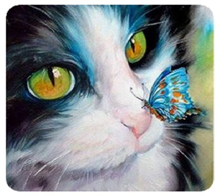 Diamentowa mozaika Kot czarno-biały z motylem NO-1007053