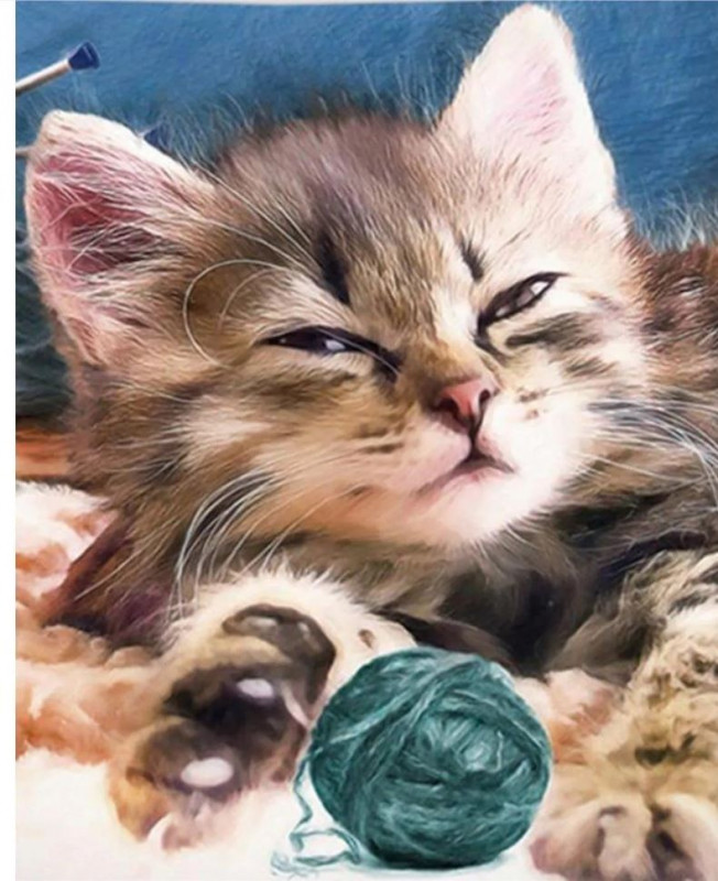 Diamentowa mozaika kot z kłębkami włóczkii NO-1008307