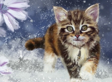 Diamentowa mozaika Kotek w śniegu NO-1005250
