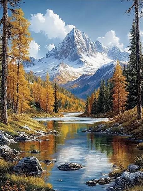 Diamentowa Mozaika Krajobraz Górski z rzeką NO-2003023