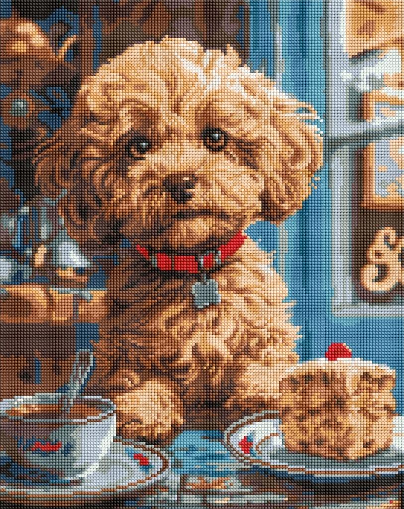 Diamentowa mozaika - Maltipoo w kawiarni 40x50cm