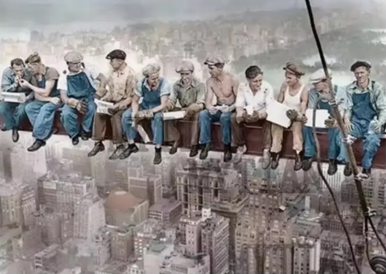 Diamentowa Mozaika Mężczyźni na belce nad miastem NO-2003122