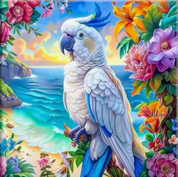 Diamentowa Mozaika Papuga biała na rajskim wybrzeżu NO-2001368