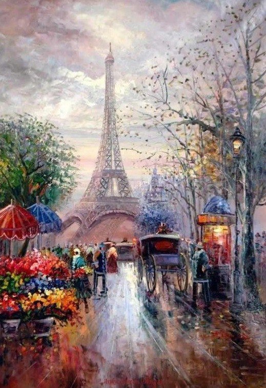 Diamentowa mozaika Paryż wieża eiffla we mgle NO-1007740