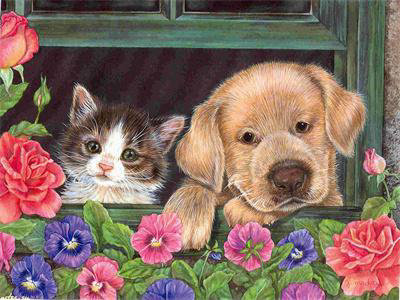 Opakowanie Diamentowa mozaika Pies i kot w oknie 60435