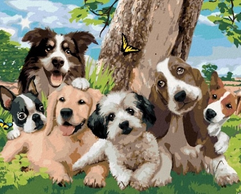 Diamentowa Mozaika Pieski rodzina pod drzewem NO-1006380