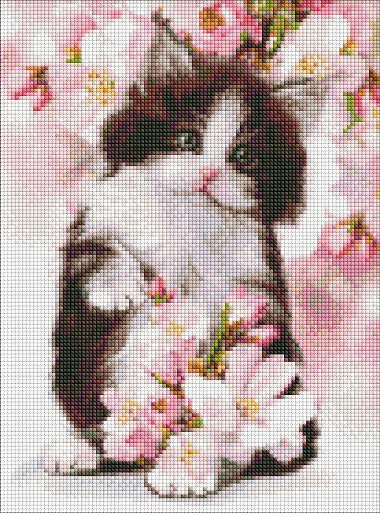 Diamentowa mozaika - Puszysty kotek 30x40cm
