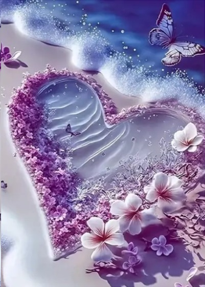 Diamentowa Mozaika Serce na wybrzeżu z kwiatami i motylami NO-2000596