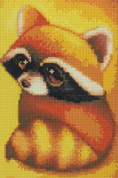 Obrazek samoprzylepny ze wzorem, obrazek naciągnięty jest na drewnianej ramie, zestaw zawiera szablon, kamyczki akrylowe podzielone według kolorów odpowiadających szablonu, plastikowy pojemnik ułatwiający manipulowanie kamyczkami, plastikowe narzędzie do aplikacji na płótno, pęsetę, haczyk do zawieszenia gotowego obrazu na ścianie, rozmiar obrazu 20 x 30 cm