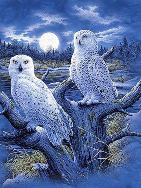 Diamentowa Mozaika Sowy białe i księżyc NO-1009207