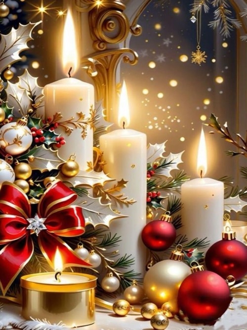 Diamentowa Mozaika Święta świece z ozdobami bożonarodzeniowymi NO-2003107