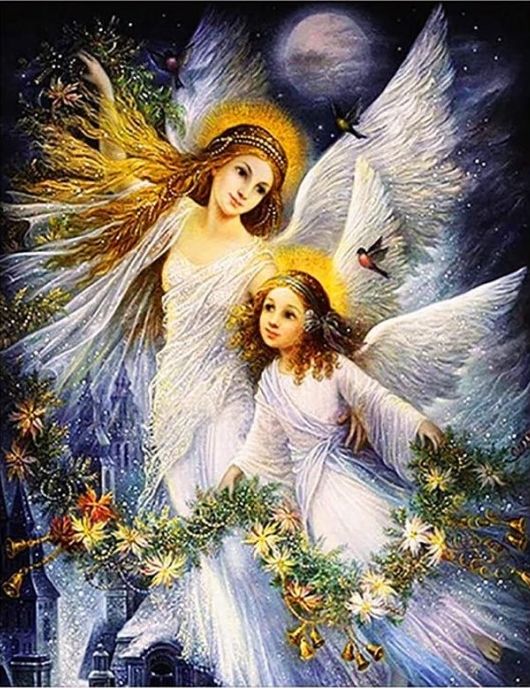 Diamentowa mozaika święte anioły z girlandą kwiatową NO-1007347