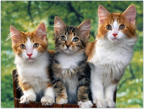 Diamentowa mozaika trzy kotki w zieleni drzew NO-1008128