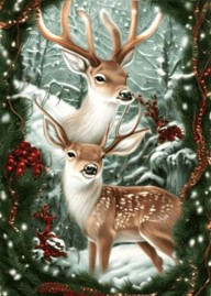 DIAMENTOWA MOZAIKA ZIMA RENIFERY W STROIKU ŚWIĄTECZNYM  NO-2000709