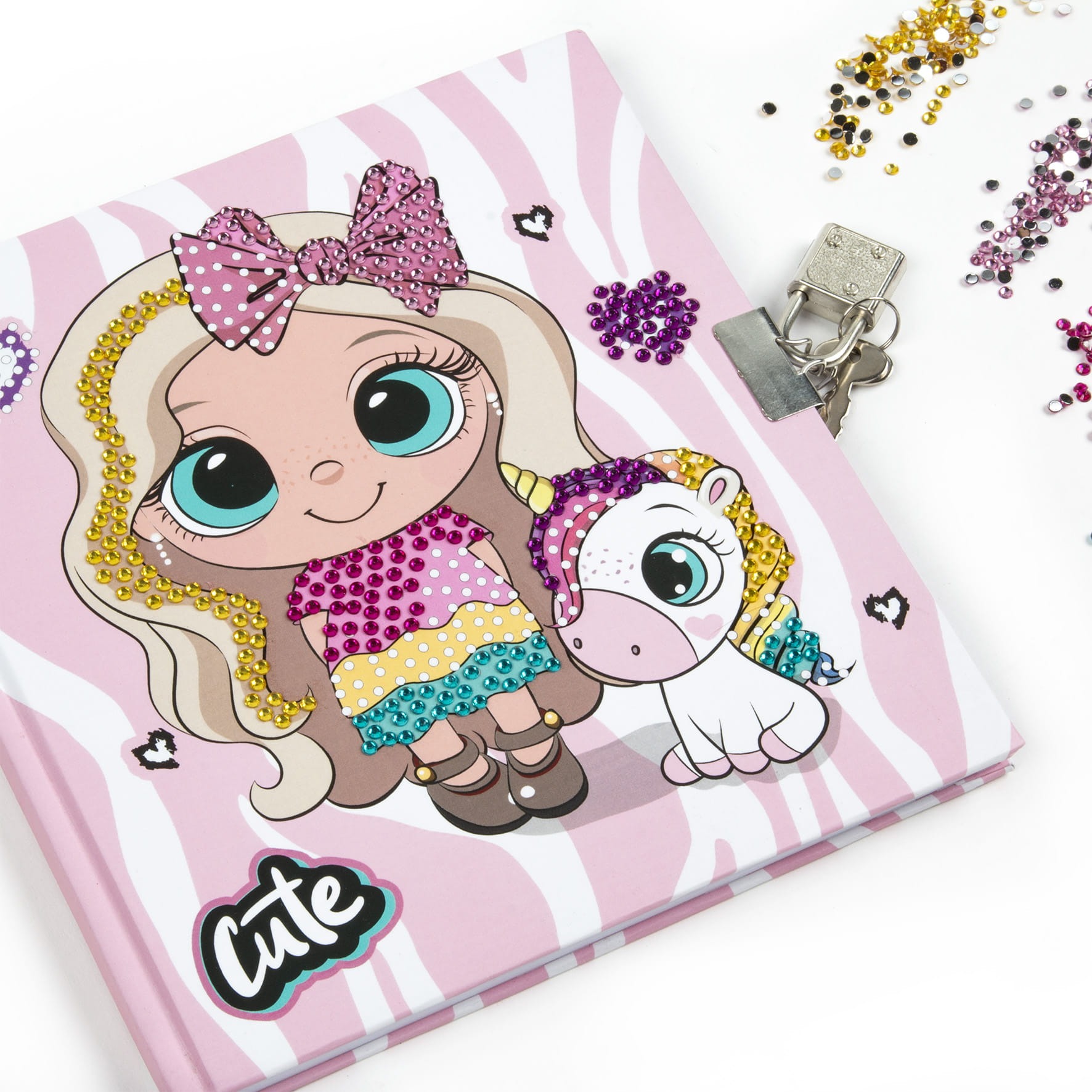 Zestaw składa się z pamiętnika, długopisu 3 kolorowego (czarny, czerwony, niebieski), plastikowego rylca do nakładania diamentów, wosku, tacki oraz ponad 500 diamentów w 5 różnych kolorach.