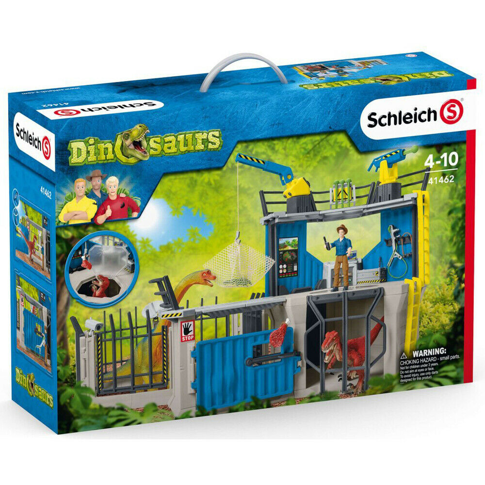 Duża Stacja Badawcza Dinozaurów 41462 to obietnica licznych przygód i świetnej zabawy! Głęboko w dżungli amazońskiej ukryta jest stacja badawcza, w której można wykonywać różne badania żyjących jeszcze dinozaurów. Team Dino, czyli 3 braci Colby: Maxx, Luis i Flynn, wyruszą na poszukiwanie tajemnic. Maxx, przywódca, ma mnóstwo pracy na dużej stacji badawczej. Na stacji znajduje się nie tylko centrala dowodzenia, lecz także platforma widokowa z ruchomą wyrzutnią strzałek usypiających oraz dźwig. Na dole znajduje się pomieszczenie kwarantanny dla świeżo złapanych dinozaurów. Tutaj przeprowadzane są pierwsze badania, a potem dinozaury wypuszczane są przez ruchome drzwi na wybieg. O nie! Welociraptor uciekł z wybiegu! Czy MAaxx zdoła go złapać, używając swojej broni z zaczepem? Zestaw zawiera liczne akcesoria oraz dwa dinozaury. Odkryj cały świat dinozaurów Schleich oraz niezwykłe przygody braci Colby!