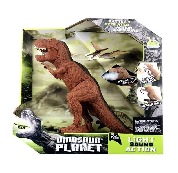 Zabawka dinozaur na baterie. Dinozaur porusza rękami, nogami i głową, a z jego pyska (po dodaniu wody) wydziela się dym. Zabawka zapakowana w kartonowe opakowanie z okienkiem. Produkt działa na baterie typu AA. Baterie nie są załączone. Produkt dla dzieci od 3 lat. Podane wymiary stanowią wymiar opakowania.