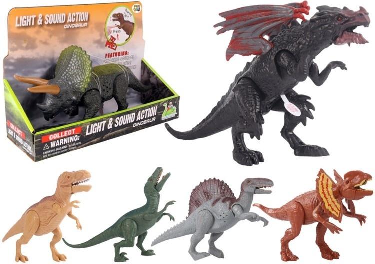 Każdy dinozaur wyposażony jest w mechanizm dźwiękowy i świetlny aktywowany przyciskiem to gwarancja emocjonującej i angażującej zabawy!
