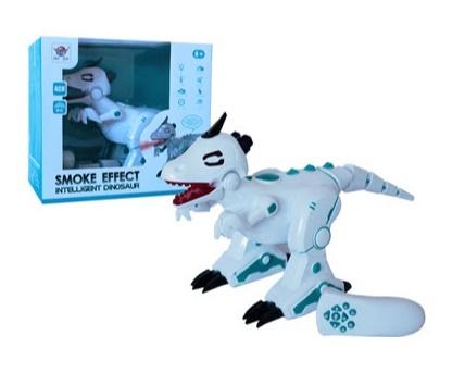 Dinozaur 41 cm, światło, dźwięk, efekt dymu, chodzi, tańczy, możliwość programowania sekwencji ruchów, zasilanie: dinozaur 4xAA, pilot 2xAA (nie są dołączone).