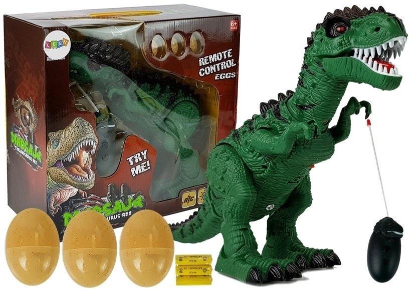 Dinozaur Zdalnie Sterowany R/C Zielony z Dźwiękiem, Znosi Jaja Zabawka jest doskonałym odwzorowaniem ogromnego Tyranozaura, żyjącego około 125 - 100 milionów lat temu. Jego wysokość sięgała prawie 15 metrów, a ważył prawie 9 ton. Interaktywne zabawki dostarczają dzieciom nie tylko rozrywki, ale dodatkowo stopniowo uczą je obsługi najnowocześniejszych urządzeń elektronicznych. Poprawiają koordynację i precyzje. Tyranozaur Rex posiada dużą czaszkę, a także masywną, muskularną budowę, wielkie białe zęby. Cała długość dinozaura to aż 54 cm! Jego kolorystyka zielona z elementami czarnego i struktura idealnie przypomina prawdziwego dinozaura. Dodatkowego efektu daje świecące łuski na głowie dinozaura w różnych kolorach, zamontowany projektor ze zdjęciem prawdziwego tyranozaura daje odczucie jeszcze bardziej realistyczne. Produkt został wyposażony w głośnik, przez który słychać odgłosy imitujące dźwięki wydawane przez dinozaury. Pilot do sterowania przedstawiający dinozaura wykluwającego się z jaja, ciekawie wygląda i prezentuje się na półce małego odkrywcy prehistorycznych stworzeń. Podczas sterowania dinozaur porusza się w przód, rusza głową, paszczą i łapami. Następną zaletą to znoszenie jaj! Na grzbiecie znajduje się otwór, gdzie wrzucamy jaja, a one wylatują od spodu, imitując prawdziwe znoszenie jaj. W zestawie 3 sztuki. Twój dinozaur może powiększyć rodzinę! Zabawa potęguję niecodzienne wrażenia oraz na pewno zainteresuje malucha do pogłębiania wiedzy na temat tych wielkich gadów. Wymiary dinozaura : 54 cm x 14,5 cm x 30 cm Wymiary opakowania: 35 cm x 16 cm x 33 cm Dinozaur zasilany jest trzema bateriami AA 1.5V (w zestawie), pilot do zdalnego sterowania zasilany jest dwoma bateriami AA 1.5V (brak w zestawie). Dodatkowo do zestawu dołączona jest ładowarka. Zabawka przeznaczona jest dla dzieci powyżej 6. roku życia. Zestaw posiada certyfikat CE i jest zgodny z normą EN 71. Zapakowany jest w kartonik, dzięki czemu nadaje się idealnie na prezent.