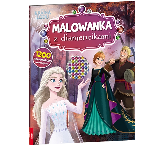 "Kraina Lodu. Malowanka z diamencikami Fantastyczna nowość dla wszystkich fanów Krainy Lodu! Dodaj nieco blasku przygodom przyjaciół z Arendelle – wszystko za sprawą aż 1200 diamencików, którymi możesz ozdobić ilustracje. Pokoloruj obrazki, a potem naklej barwne diamenciki w zaznaczonych lub wybranych przez siebie miejscach. Zabawa w kolorowanie i naklejanie pomaga ćwiczyć motorykę i uczy kolorów. Dzięki perforowanym stronom gotowe dzieła możesz wyjąć z książki i udekorować nimi swój pokój. Ta pozycja to świetny prezent dla małych artystów! Format: 217 x 280 mm, 24 strony"