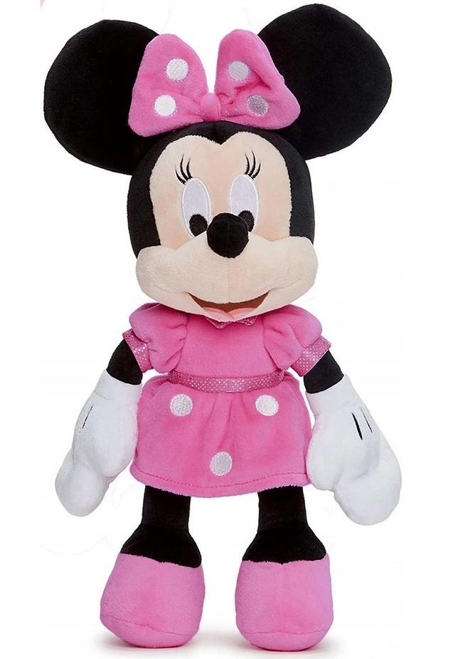 Myszka Minnie to bardzo urocza myszka, która jest narzeczoną Myszki Miki. Ubrana jest w śliczną różową sukienkę w białe kropki, pasujące do niej kokardę i pantofelki. Maskotka ma duże usztywniane czarne uszy, materiałowe oczka i szeroki uśmiech. Została wykonana z niezwykle miękkiego w dotyku pluszu. Pluszowa myszka ma aż 35 cm wysokości. Z pewnością szybko stanie się jedną z ulubionych przytulanek dziecka. Zabawka jest odpowiednia dla dzieci w każdym wieku.
