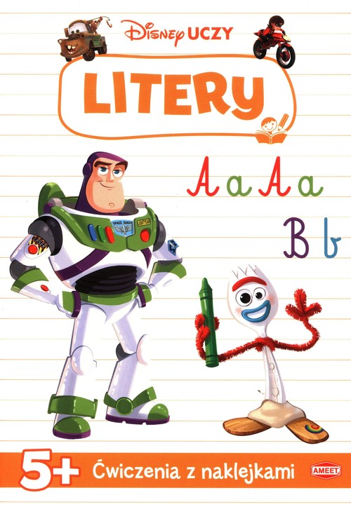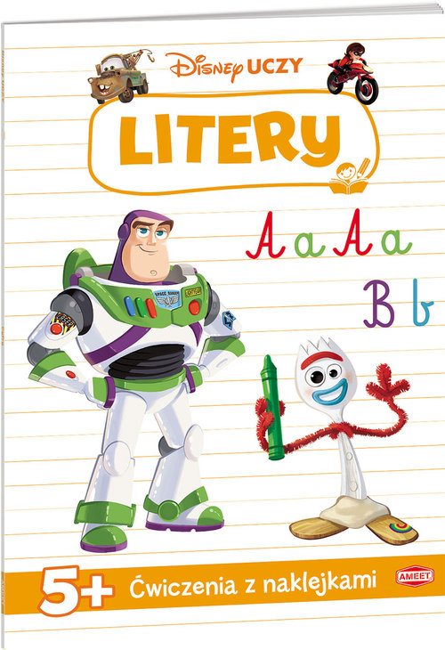 Książka Disney Uczy. Litery. powstała w ramach programu Disney Uczy i jest przeznaczona dla 5-latków. Wprowadza ona przedszkolaki w świat liter i przygotowuje do nauki pisania. Podczas rozwiązywania zadań dziecko ćwiczy pisanie liter po śladzie, doskonaląc w ten sposób sprawność manualną i opanowując technikę trzymania ołówka. Dodatkowo mały uczeń poznaje alfabet oraz uczy się rozróżniać małe i wielkie litery. W książce, oprócz różnorodnych ćwiczeń związanych z literami, znajdują się także ciekawe zadania wzbogacające słownictwo. W zajęciach dzieciom towarzyszą ulubieni bohaterowie, a dodatkową atrakcją są naklejki, które można wykorzystać w zadaniach.