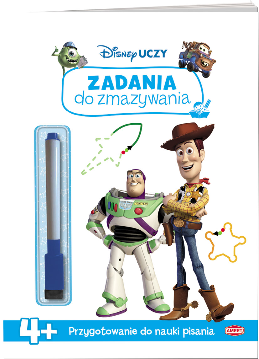 Seria książek, która powstała w ramach programu edukacyjnego Disney Uczy. Dzięki niej dziecko podczas doskonałej zabawy ma okazję zmierzyć się z odpowiednimi dla jego wieku, różnorodnymi zadaniami edukacyjnymi. Ścieralne strony oraz dołączony do książki mazak sprawiają, że przedszkolak może wielokrotnie rozwiązywać swoje ulubione zadania. Narysowane szlaczki bez trudu można zetrzeć i zacząć zabawę od nowa. Seria jest doskonałym narzędziem, dzięki któremu przedszkolak ćwiczy motorykę małą i rozwija umiejętność koncentracji.