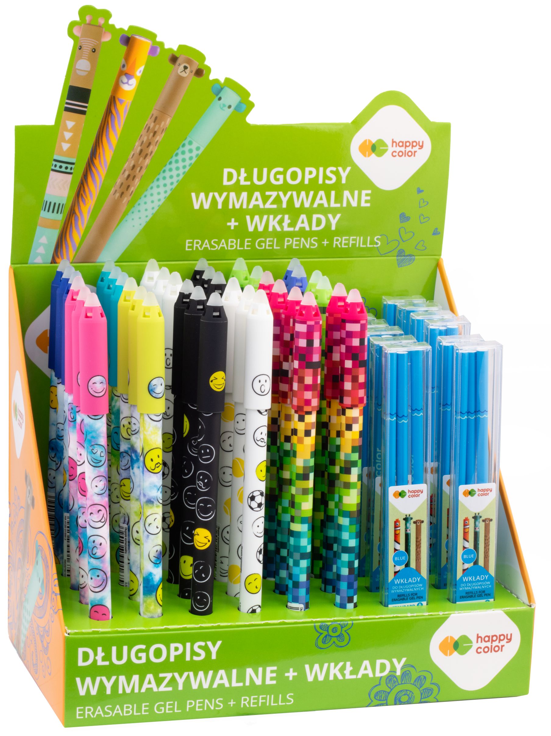 Opakowanie Display Długopis wymazywalny mix 2 0.5mm niebieski Happy Color 36 szt. + wkłady 12 etui