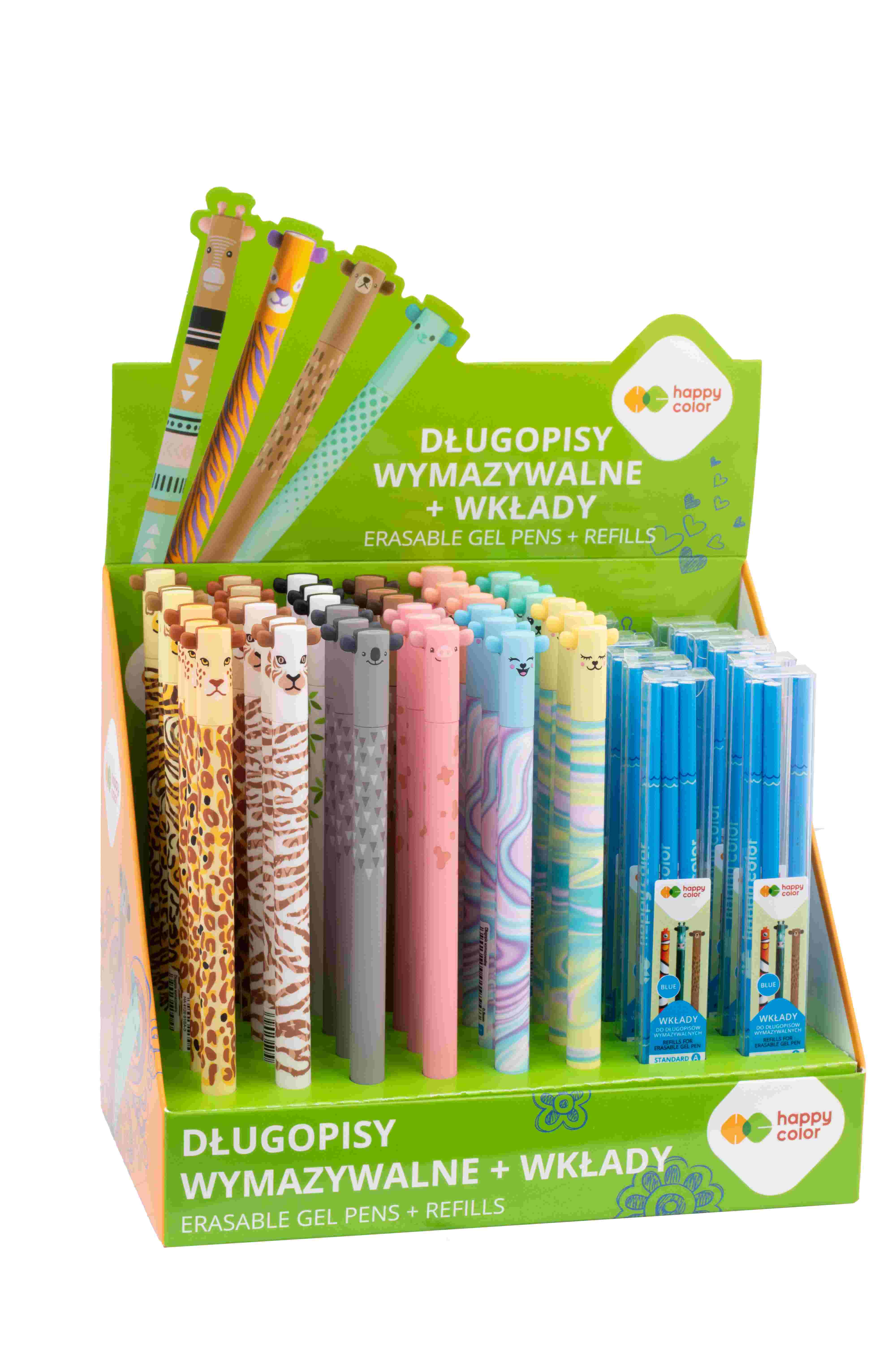 Opakowanie Display Długopis wymazywalny Uszaki mix 1 0.5mm niebieski Happy Color 36 szt. + wkłady 12 etui