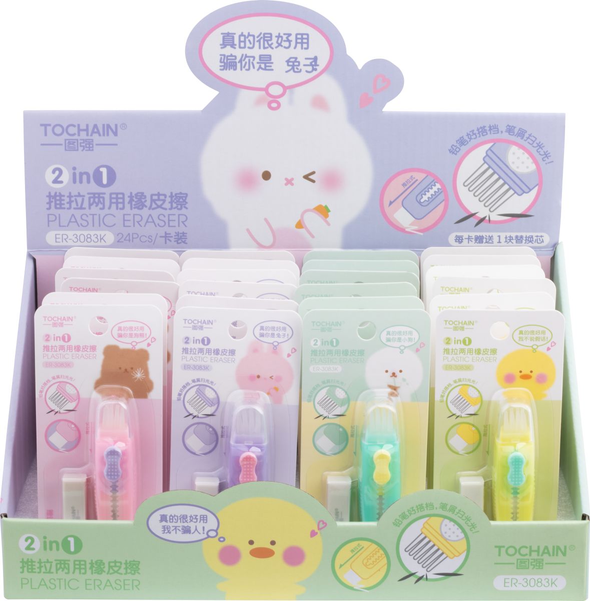 Display Gumka do ołówka wysuwana z miotełką i zapasem na blistrze 24 szt.