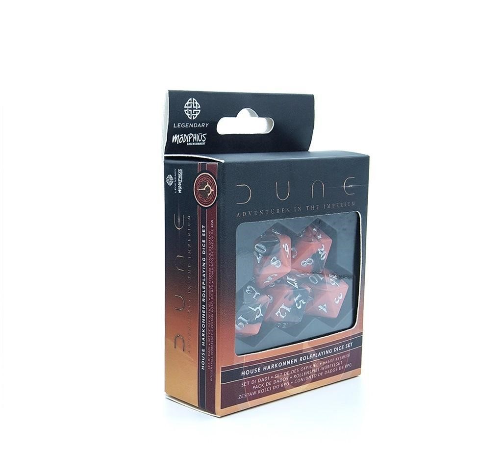 Każda z kości zawiera symbol Harkonnenów na jednej ze ścianek.