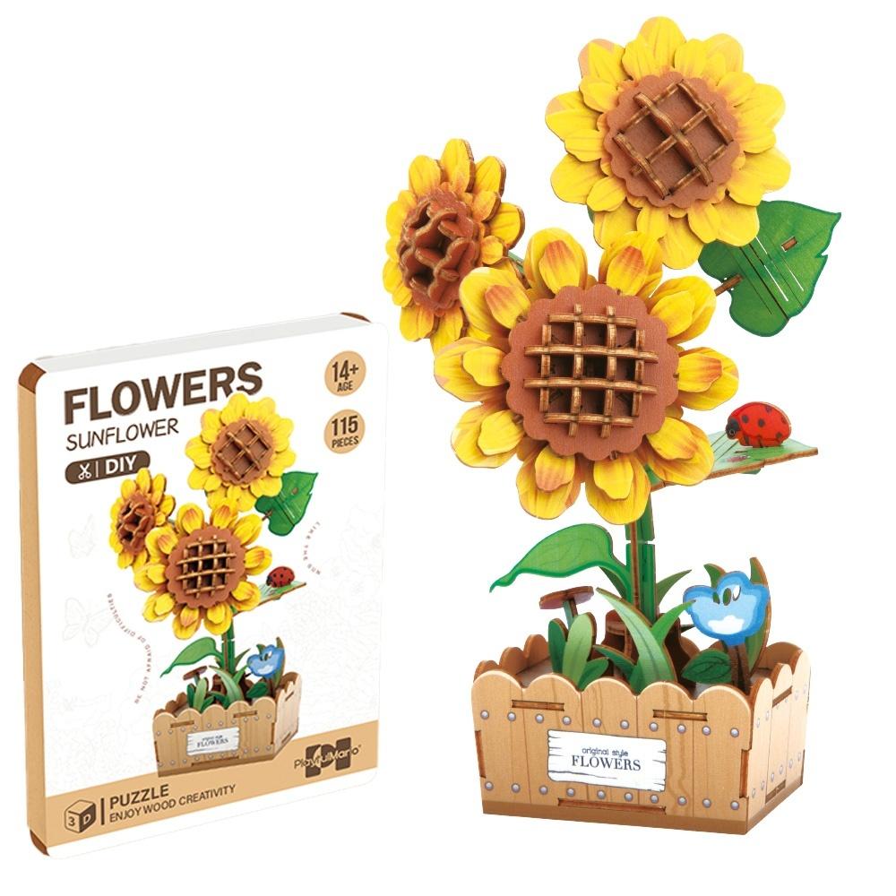 Opakowanie DIY drewniane kwiatki 3D słoneczniki